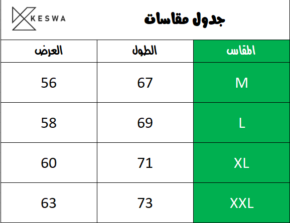 • المقاسات المتاحة: M – L – XL – XXL
